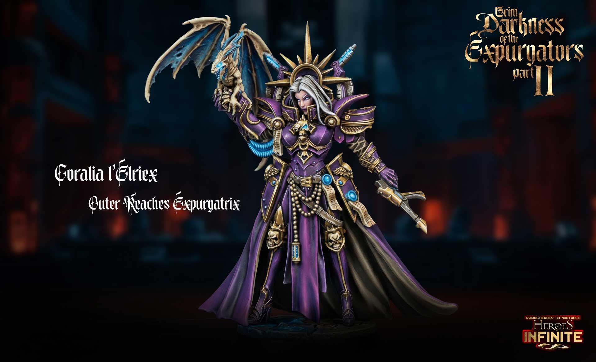 Expurgatrix Coralia L’Elriex is the kind of character who doesn't fear visiting the farthest reaches of space to spread the Holy Gospel of the Sisters. This extremely elegant character won’t shy away from using alien technology and creatures to attain her goals.