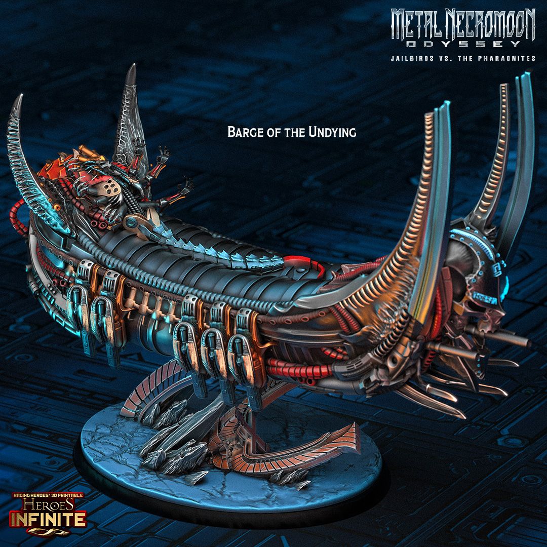 As explained previously, the Pharaonites are metal beings discovered by the humans of the Iron Empire (introduced in our Raging Heroes range) in a field of steel asteroids. These entities were buried deep within millennia-old tombs, protected by a form of necromantic technomagic that has preserved them from the ravages of time.